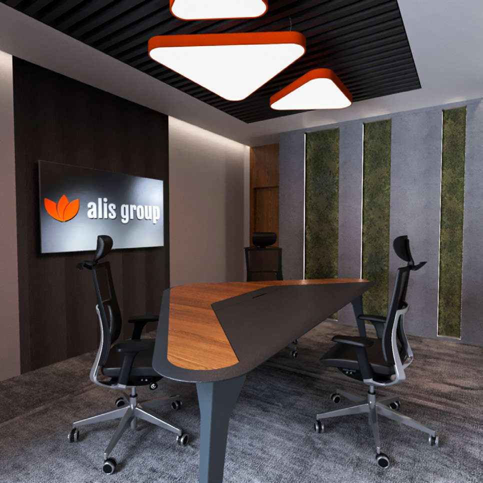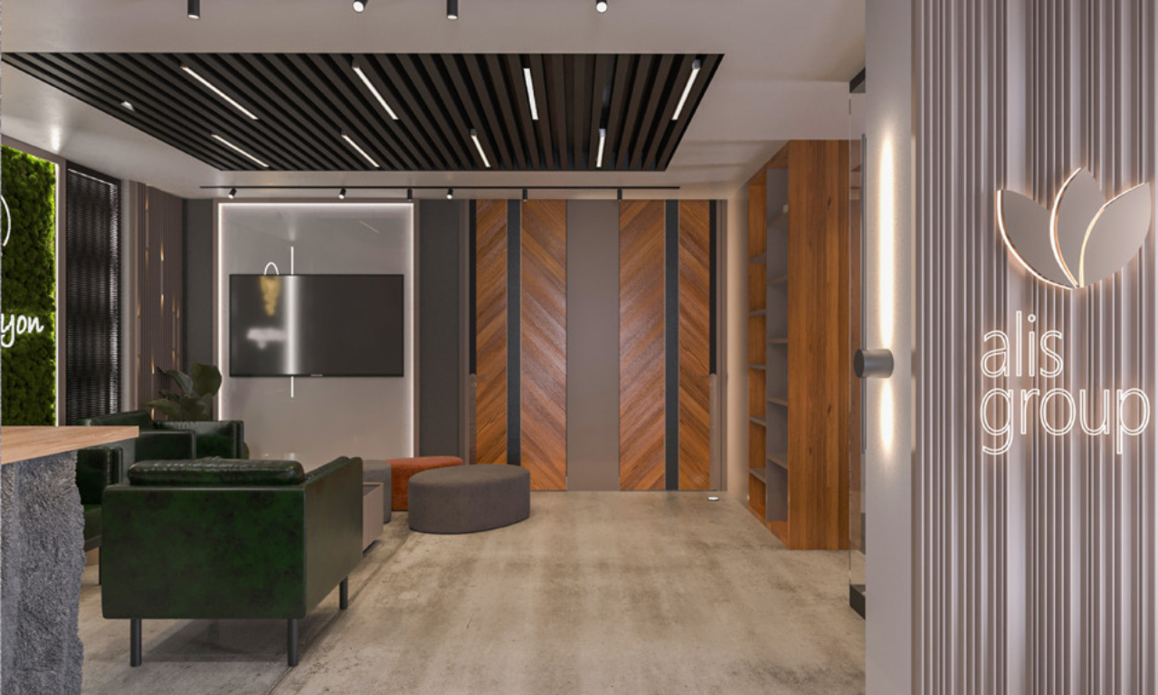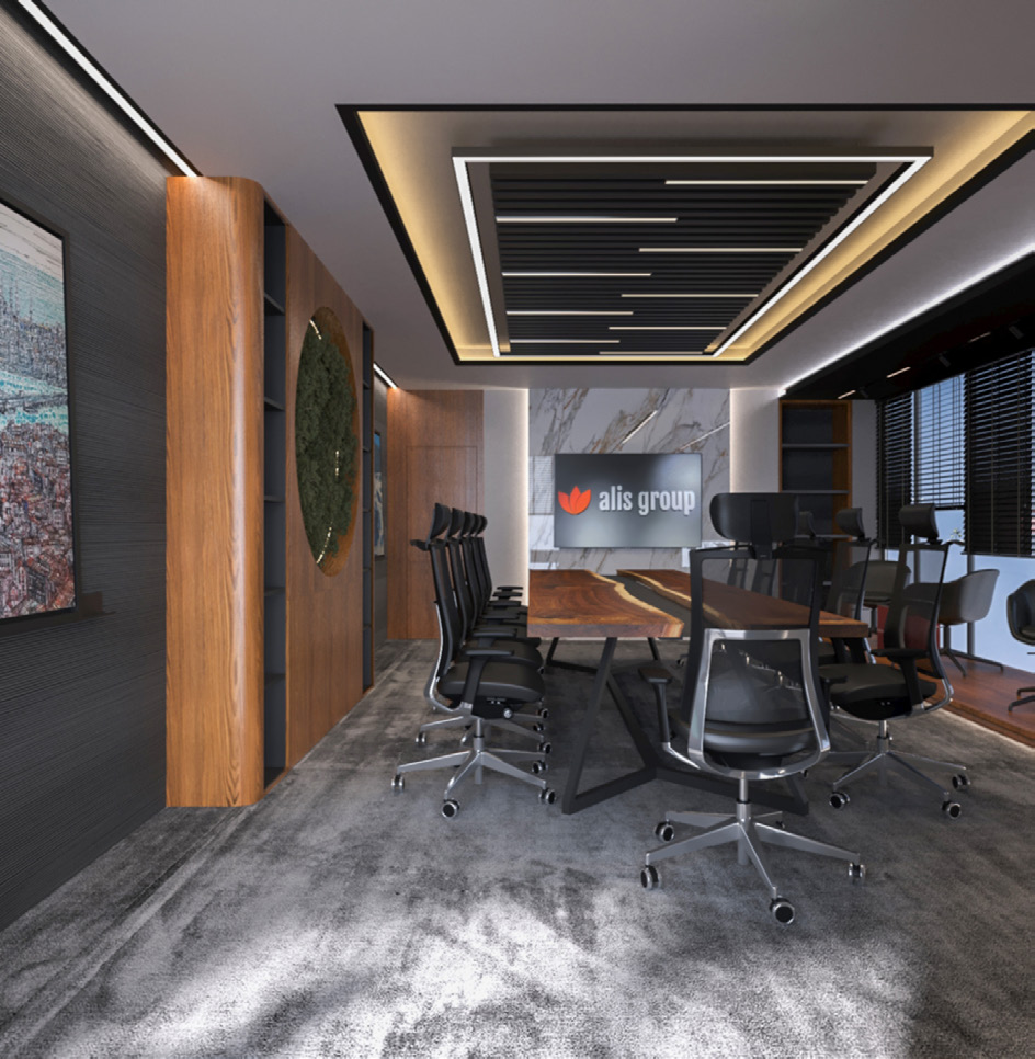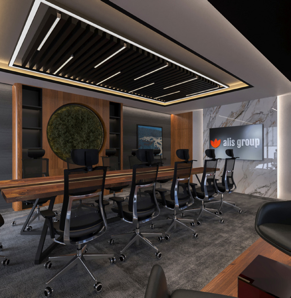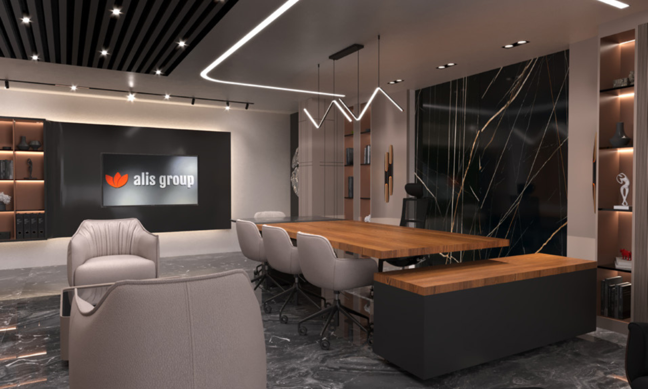 Ümraniye’de yer alan 90 ‘lik ALIS Group ofis projesi, güçlü ancak minimalist bir tasarım dili oluşturmak adına modern geometriyi lüks öğelerle harmanlamaktadır. Mekânsal kurgu, profesyonel bir iş ortamının prestijini yansıtacak şekilde detaylandırılmıştır.