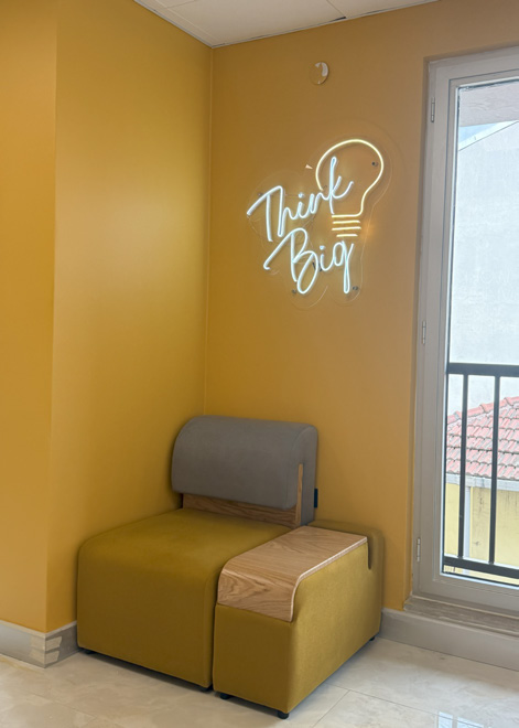 • Düşünceli bir aydınlatma tasarımıyla zenginleştirilen ortam, sadece bir kahve molasından fazlasını sunarak estetik açıdan zengin bir deneyim sağlar.