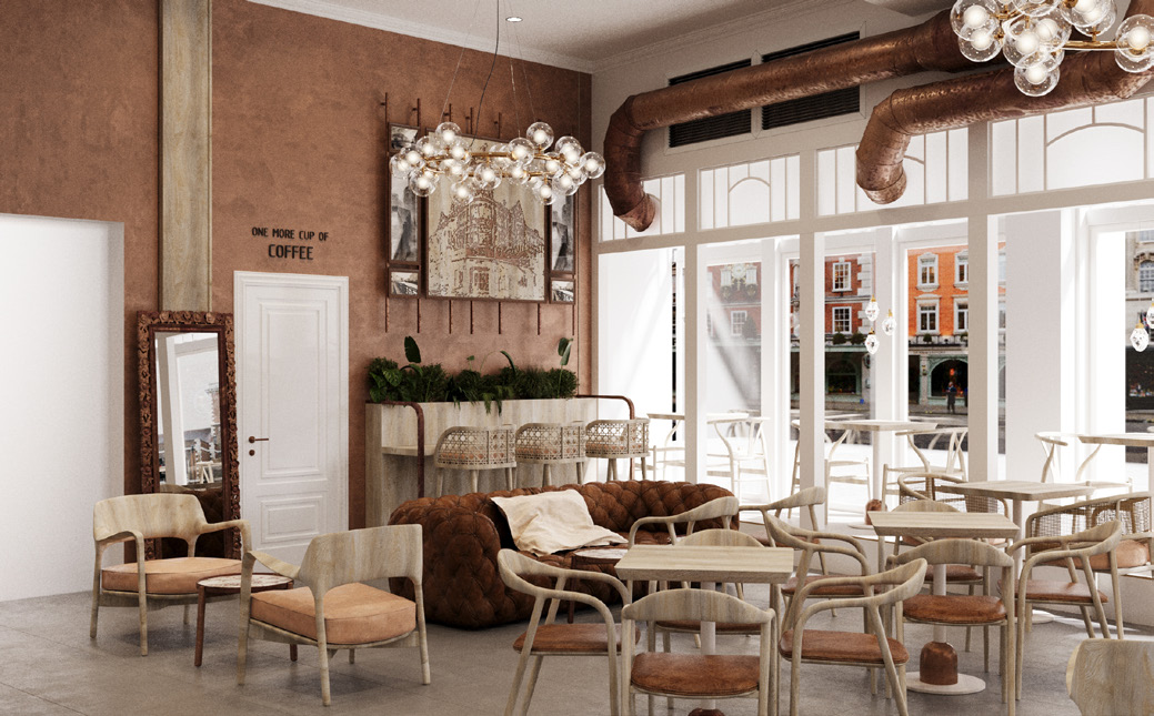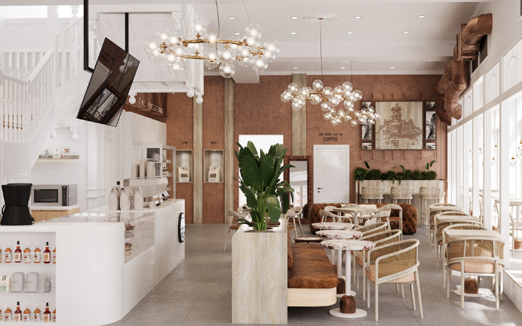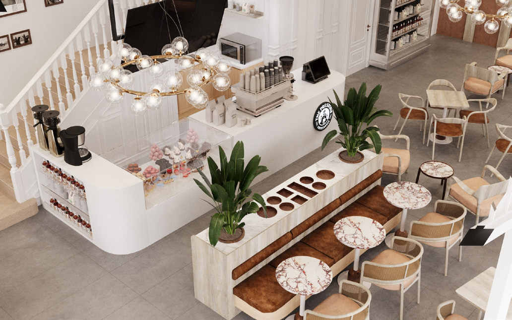 Zemin kat, etkileşimi ve kamusal katılımı teşvik eden modern bir kafe sunarken; üst katlar, hareketli bölmeler ve modüler sistemlerle desteklenen esnek ofis alanları olarak organize edilmiştir. Bu sayede mekan, birden fazla kullanım senaryosuna olanak tanıyacak şekilde kurgulanmıştır.
